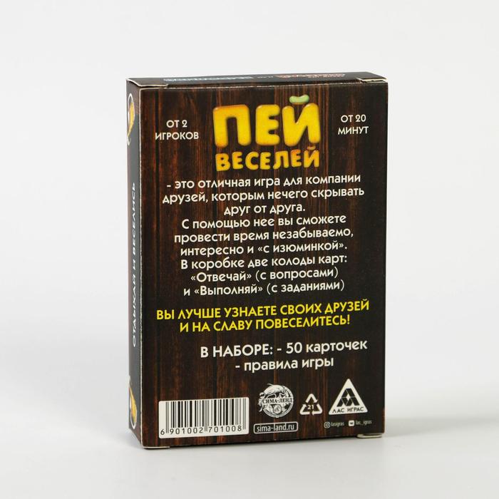 Купить игра для компании "пей веселей" 50 карт от 180 руб. с доставкой до пункта выдачи в Кубинке. Интернет магазин ДекаМаркет. Оплата при получении.